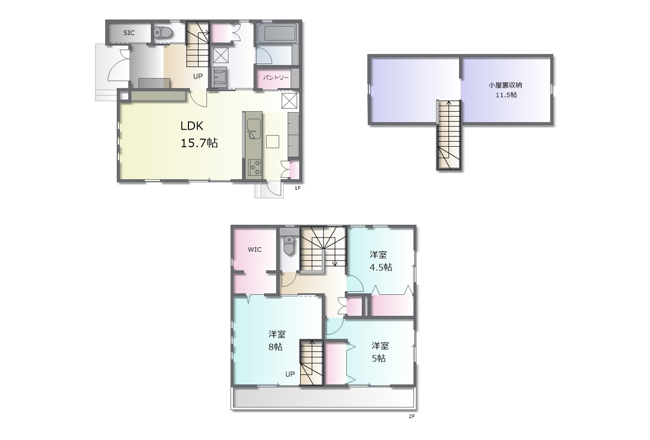 - ※完成予想図はいずれも外構、植栽、外観等実際のものとは多少異なることがあります。