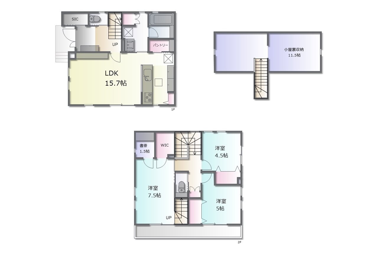 - ※完成予想図はいずれも外構、植栽、外観等実際のものとは多少異なることがあります。