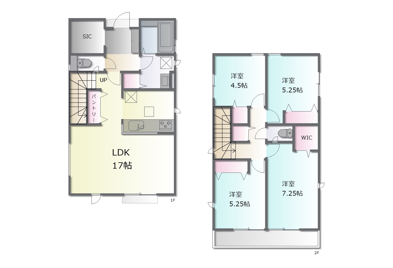 - ※完成予想図はいずれも外構、植栽、外観等実際のものとは多少異なることがあります。