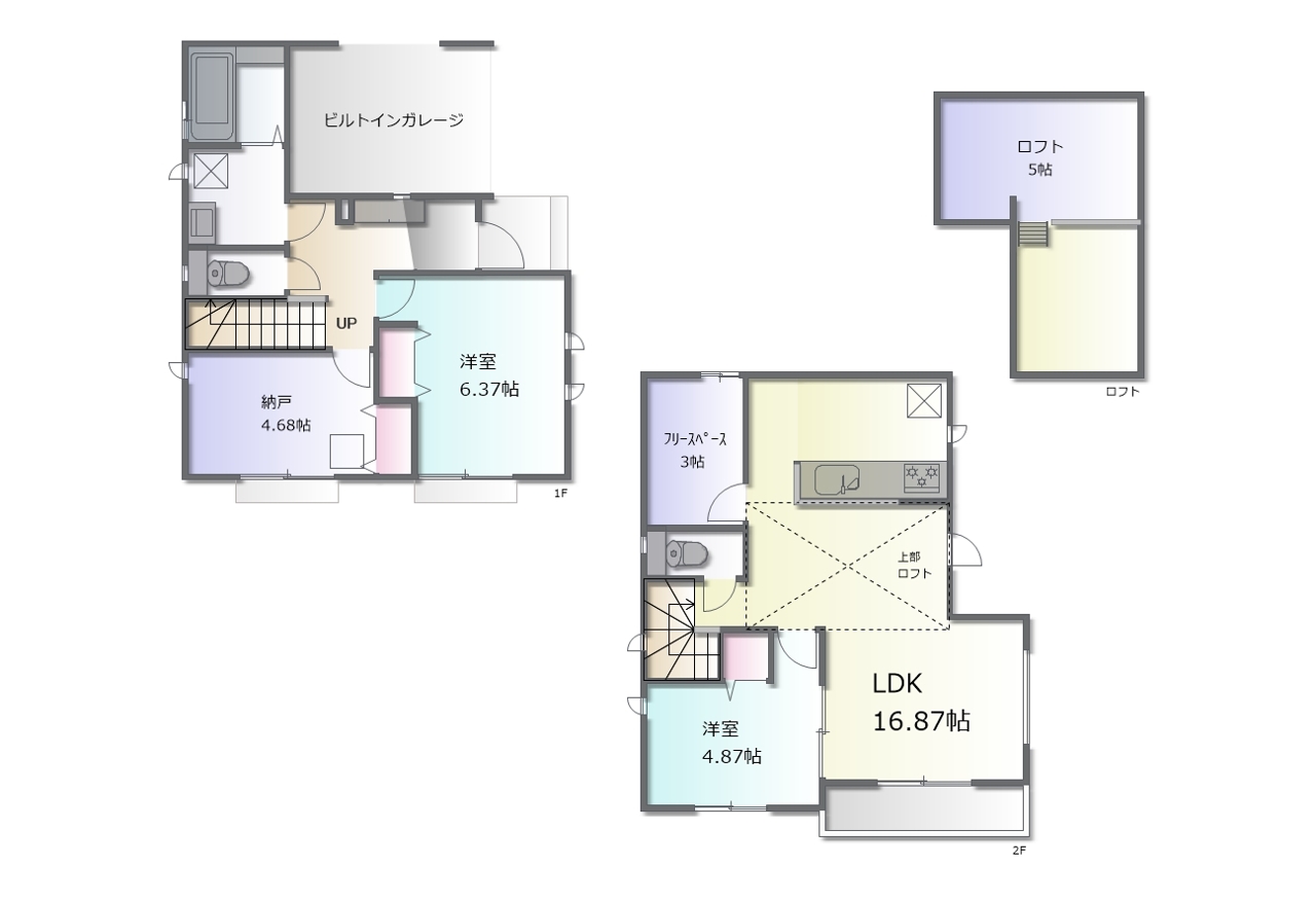 - ※完成予想図はいずれも外構、植栽、外観等実際のものとは多少異なることがあります。