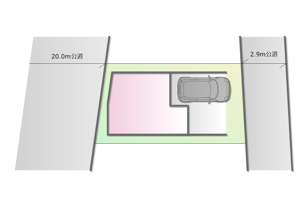 | 接道 | 北側2.9M公道に接道 南西側20M公道に接道 |