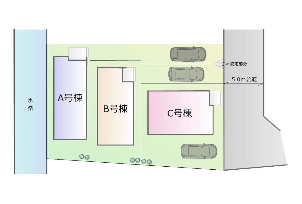 | 接道 | 東側5M公道に接道 | 小学校区 | 玉川小学校(600m) |