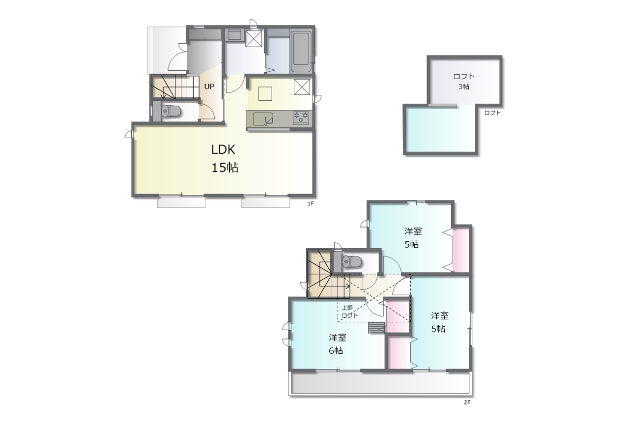 - ※完成予想図はいずれも外構、植栽、外観等実際のものとは多少異なることがあります。