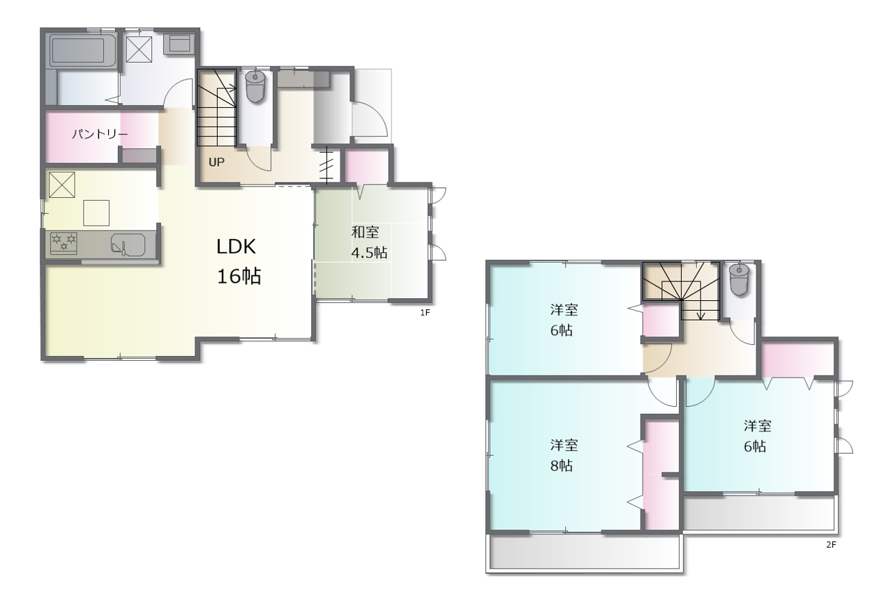 - ※完成予想図はいずれも外構、植栽、外観等実際のものとは多少異なることがあります。
