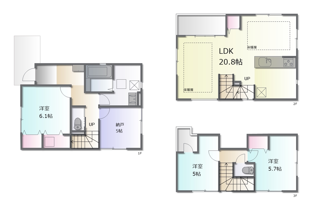 - ※完成予想図はいずれも外構、植栽、外観等実際のものとは多少異なることがあります。
