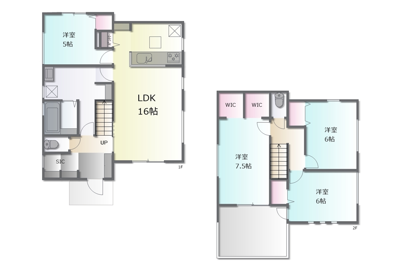 - ※完成予想図はいずれも外構、植栽、外観等実際のものとは多少異なることがあります。